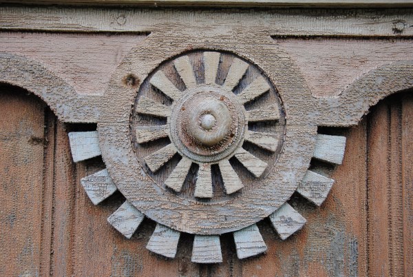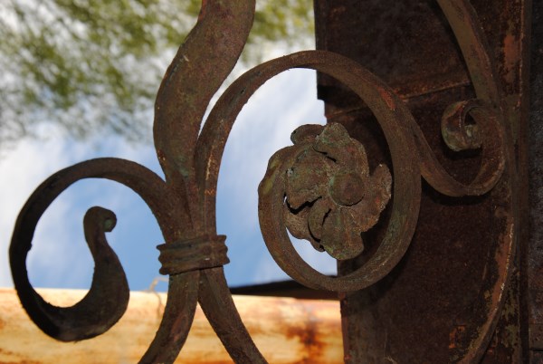 Покидаем дом. Кованные цветочки держат пробитый козырек крыльца