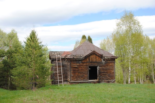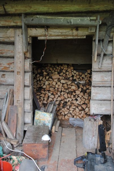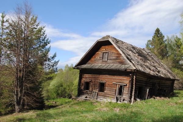 За домом стоит покосившаяся избушка - возможно, мастерская
