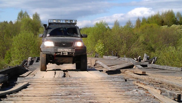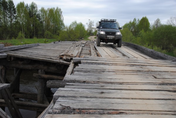 Было непонятно, выдержит ли он две тонны железа на колесиках. А ехать-то надо. Мост выдержал, но ходил ходуном, а постеленные на нем бревна все крутились как буддистские молитвенные барабаны. Как знать, может тут свои особые мантры