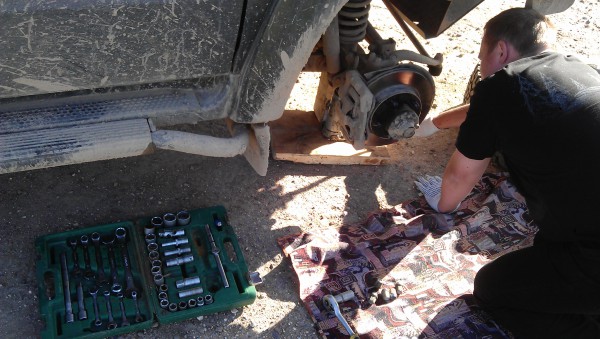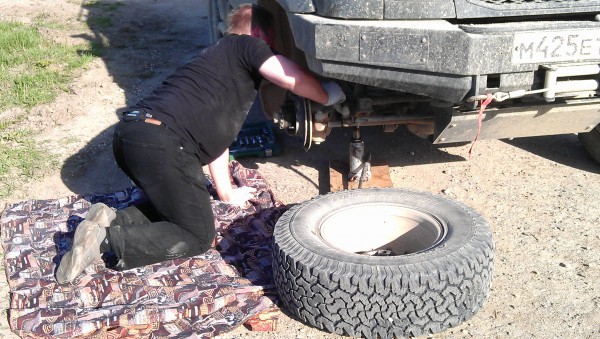 В Чухломе нет автосервисов - об этом нам сказали доблестные гайцы на дороге. Поэтому мы встали рядом с ними, и Вася начал снимать амортизатор.