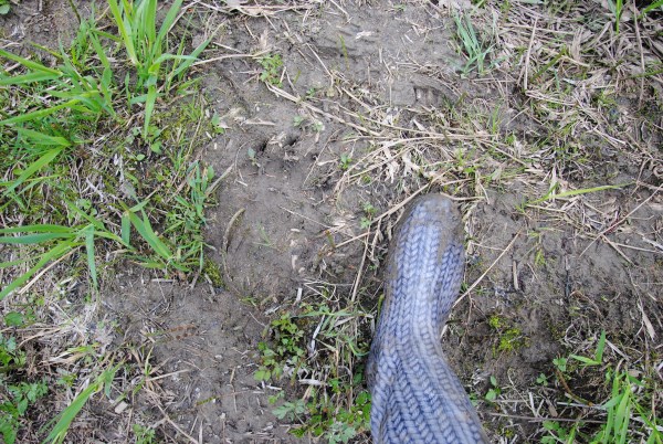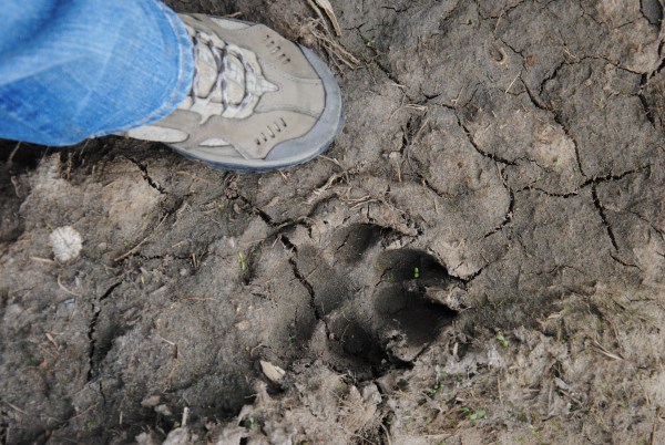 Мы тут же, по свежаку наткнулись на следы молодого медведя....