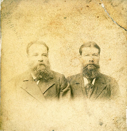 Удивляться богатству погореловских жителей позапрошлого века не приходится - это были государственные крестьяне, которые могли уходить на заработки или вести ремесло в родном крае. Самые богатые были отходниками. И уезжали, как правило, в Санкт-Петербург. Говорят, этот дом поставили раньше, чем в Погорелове появился терем. А разбогатели владельцы этого дома якобы на торговле солью. Раскулачили их в 30-е годы прошлого века, а дом простоял до 70-годов и рухнул. Вот они, Варгасовы. Их фотку я нашла на костромских сайтах. Подписано, что это отец и сын. Неплохо смотрелись тогда погореловские крестьяне.