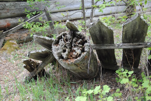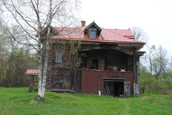 И вот наконец, мы доходим до него, погореловского терема. Он показывается нам непарадной своей стороной. Проще говоря, мы идем с тыла. Все как в сказке. Даже желание сказать, чтобы дом повернулся к нам передом, а к лесу задом. Но тут кругом лес. И только выкашивание травы и вырубка наступающих деревьев спасает Погорелово от зарастания.
