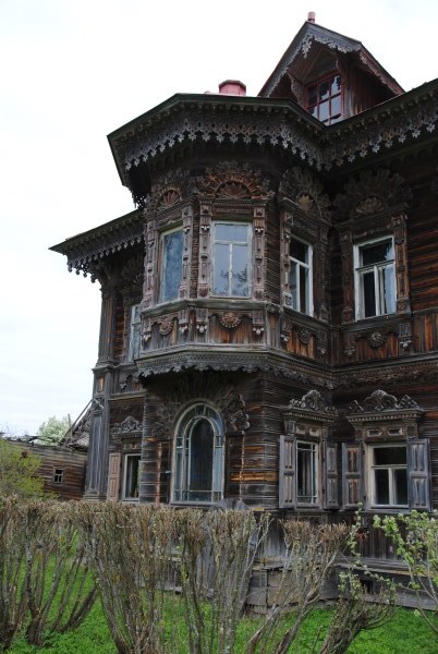 Терем в Погорелово: в плену небытияФотографии того края Костромской губернии я видела многократно в насыщенно-адовых ЖЖечках участников ежегодного джиперского слета "Полная Чухлома". В прошлом ноябре нас звали в команду двух авто и одного квадрика, но наш УАЗ был не готов - без лебедки там нечего делать в лесовозных колеях. Зима прошла в медитациях над картой Костромской области в той ее части, куда даже Сусанин не дошел, сгинул где-то ближе к губернскому центру вместе с поляками. А тут медвежий угол. Край земного диска, откуда видны слоны, стоящие на черепахе. Но так было не всегда - когда-то Чухлома была весьма живым краем предприимчивых людей, лесных трактов, речных мельниц и огромных молочных стад. А сейчас... Вместо трактов - старые грунтовки и еле видные тропы, нарисованные на картах пунктиром. Вместо когда-то многолюдных богатых сел и деревень слова "урочище" и "нежилой", иногда с крестиками храмов и погостов. И всюду море.. нет, океан леса - все восточное полушарие глобуса Костромской губернии раскрашено зеленым. Мы, как истинно сумасшедшие, решили, что настоящая "Полная Чухлома" - это когда ты с Чухломой один на один, а не в команде. И это стоит пережить - единоборство с собственной паникой от неизвестности и внезапных приключений. Понимая, что вдвоем и одной машиной мы не сможем пробиться по бездорожью до множества точек интереса, я выбрала среди драгоценностей, скрываемых костромскими лесами, самый красивый бриллиант - терем в Погорелово. Резное деревянное чудо в мертвой деревне. Вот туда нам и надо! Хоть раз в жизни увидеть, прикоснуться.