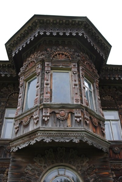 Эркеры с резными наличниками и карнизами. Смотришь и не веришь...