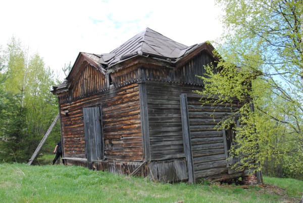 Преодолевая грунтовку, мы вообще-то планировали попасть в Асташово, где жил современник и деловой конкурент Поляшова Мартьян Сазонович Сазонов, который был его постарше, но во многом похож. Он тоже построил свой терем для второй супруги, которая тоже была дочкой священника и младше его более, чем на 20 лет. Правда, дом не был так утилитарен, как поляшовский и не сохранился в первосозданном виде, а практически догнивал, пока не попал в руки человека, который не дал ему погибнуть, занялся восстановлением. Тот терем имеет утраты и на момент нашей поездки стоял в строительных лесах, но мы собирались его посетить и даже договорились, чтобы нас там ждали. Однако доехав до Введенского, мы услышали стук в подвеске. Осмотр УАЗика показал нам, что отломился кронштейн амортизатора.