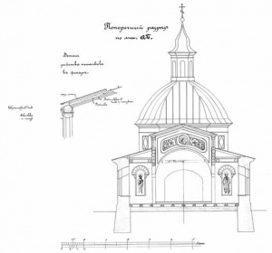Увеличение проема, соединяющего зимнюю и летнюю церкви, оказалось невозможно ввиду слабости стены над ним, на которую опираются распалубки сомкнутого свода. Поэтому, а также в целях увеличения помещений церкви, необходимо разобрать тяжелый сомкнутый свод и раздвинуть боковые стены летней церкви до размеров, необходимых для помещения в сей церкви 800–850 человек, перекрыв затем получившееся помещение деревянным куполом.