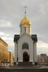 Относительно недалеко от Собора находится ставшая символом Новосибирска, маленькая, но гордо расположившаяся в самом центре города посреди Красного проспекта православная Часовня святителя Николая. В 1913 году считалось, что именно она является географическим центром всей Российской империи! Сегодня центр находится в Красноярском крае, где отмечен памятным знаком. Адрес часовни: Красный проспект, 17а. Возвели часовню во имя Святителя и Чудотворца Николая в 1914 году по проекту известного архитектора Андрея Крячкова, вдохновленного новгородскими архитектурными мотивами. Именно он проектировал такие архитектурные достопримечательности, как «Стоквартирный дом» и Городской торговый корпус (Новосибирский краеведческий музей). Строительство посвятили железной дороге, повлиявшей на развитие всего города, точнее — 20-летнему юбилею со дня закладки железнодорожного моста через реку Обь.