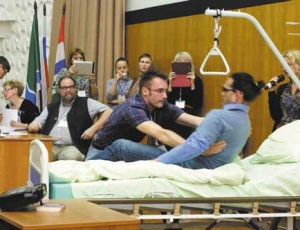 В докладе Юлии Франке и Антьи Шнайдер из Университета города Галле (Германия) «Концепция ухода. Сочувствие и сострадание в уходе» прозвучало о том, как именно эмпатия (как сочувствие и сострадание) может входить в технологию качественного ухода, а также в образовательный стандарт сестры по уходу. Ив Фром из того же университета рассказал о технологии умывания немощного человека, и разных аспектах правильного выполнения таких действий (успокаивающие и активирующие манипуляции, предупреждение и общение во время процедуры). Специалист по уходу О.Н. Выговская, которая входит в команду по подготовке к работе Епархиального Дома Милосердия, на специальном манекене (с имитацией пролежней разной степени тяжести) провела мастер-класс по эффективному лечению ран с помощью интерактивных повязок. Второй день конференции был открыт докладом Кристины Скупин, директора по уходу Дома по уходу за пожилыми людьми города Франкенберг «Работа с людьми с деменцией. Что мы должны знать в первую очередь ухаживая за такими пациентами». В докладе говорилось о новой концепции внутреннего жизненного пространства Дома по уходу, построенного по подобию большой семьи, о необходимости избегать «больничного» характера таких заведений. Представитель Бердского медицинского колледжа рассказала о стандартах и программе подготовки медицинских сестер в колледже. Ив Фром в своем втором докладе «Кормление больного человека. Концепция и различные подходы» рассказал о правильных действиях специалиста по уходу во время кормления больного. В конце второго дня специалисты Андреас Шольц из университетской клиники и Себастьян Виттеборн из центра социальной психиатрии DAS BOOT г. Лейпцига провели мастеркласс и показали разные способы поднятия, переворачивания и перекладывания обездвиженного пациента из разных положений без использования специальной техники. Участники конференции сами попробовали эти методы и убедились, что даже хрупкая медсестра может перевернуть и даже поднять грузного пациента, не нанося вреда своей спине. Приветственное слово в начале конференции и слова благодарности после ее завершения сказала руководитель отдела здравоохранения Советского района Наталья Александровна Егорова, отметив, что это очень важное направление работы. Заинтересовавшись, она прослушала практически все доклады. Всего в конференции приняли участие более 180 человек: сестры милосердия и социальные работники из приходов Новосибирской Епархии (более 40 человек), а также медицинские сестры из НИИПК им. Мешалкина, Федерального нейрохирургического центра, 12-й городской клинической больницы, Государственной бассейновой больницы, поликлиники №14, Новосибирского хосписа, Центра повышения квалификации медицинских работников, Комплексного центра социального обслуживания населения Советского района, студенты и преподаватели Бердского медицинского колледжа, представители организации «Каритас», Белла-Сибирь. Участники конференции получили сертификаты об участии, подписанные профессором Олафом Скупиным и протоиереем Борисом Пивоваровым.