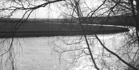 16.20 Кажется, приплыли. Пристаем, хватаясь руками за кусты. Течение сильное, берег круто уходит в воду, встать около лодки невозможно - сразу глубина. Выбираемся по одному на скользкий глинистый откос, вплотную прижав лодку к берегу. Отправляем гонца наверх, искать станцию и уточнять расписание. Место неудобное, нужно мыть лодки, в них слишком много песка и грязи, а здесь, пожалуй, только еще больше испачкаешь, да и сам в воду слетишь. Немного выше по течению единственное удобное место - галечная отмель, образованная впадающим в реку ручейком. Нужно вести лодки туда. Но как? По крутому глинистому берегу едва можно идти самому, у кромки воды - кустарник, и дальше сразу глубина. К лодке и подойти-то нельзя. Вспоминаем, как вести "корабликом". Привязываем лодку за нос и корму, веревку - в руки, дергаем за корму, нос разворачивается против течения, и лодка сама отходит от берега. Теперь, сохраняя острый угол к течению, ведем лодку. Основное препятствие - трубы водозабора, которые уходят далеко в реку. Обводим лодки, хотя и с трудом.