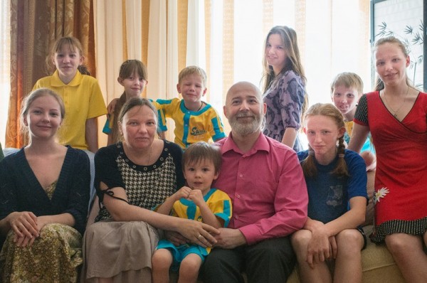 Слева Саша большой, Машин муж. Василий Ялтанский, папа. Окончил республиканскую математическую школу в Казани (131-ю) в 1985-м году, МФТИ в 1991-м году, аспирантуру МФТИ 1994-м, кандидат технических наук, работает в Красногорске, в ЗАО "СОЮЗСНАБ" директором по информации. Наталья Ялтанская, мама. Окончила МФТИ в 1992-м году, работала в ФГУП "Астрофизика" с 1992-го до 2013 года. Сейчас ведет в физматкружок в ЗФТШ (заочная физико-техническая школа) физтеха. Дети: Маша (Бурганова) – выпускница ПСТГУ прошлого года, работает, преподает в том же ПСТГУ. Окончила с отличием Красногорскую художественную школу. Имеет 1-й разряд по художественной гимнастике, золотую медаль за окончание школы. Валя – студентка МГАФК, третий курс, ЛФК. Студентка первого Медколледжа (второй курс, сестринское отделение, вечернее). Окончила музыкальную школу по классу фортепиано с отличием, имеет 1-й разряд по спортивному плаванию. Света – 10 класс, Дедовский Лицей. Музыкальня школа по классу скрипки (с отличием). Сима – 10 класс, Дедовский Лицей. Музыкальная школа по классу фортепиано (с отличием), волейбол – второй взрослый разряд, легкая атлетика. Лена – 6-й класс, Дедовский лицей, музыкальная школа, спортивное плавание – 2-й взрослый разряд. Аня – 4-й класс, православная школа "Рождество", конный спорт (выездка), флейта – частные уроки. Саша – 3-й класс, православная школа "Рождество", 2-й юношеский разряд по самбо, Хор мальчиков имени святого Адмирала Ушакова церковной музыкальной школы г. Красногорска. Жорик – 1-й класс, православная школа "Рождество", подготовительное отделение церковной музыкальной школы г. Красногорска. Федя – 4 года, "хозяйский сын".