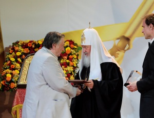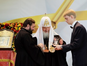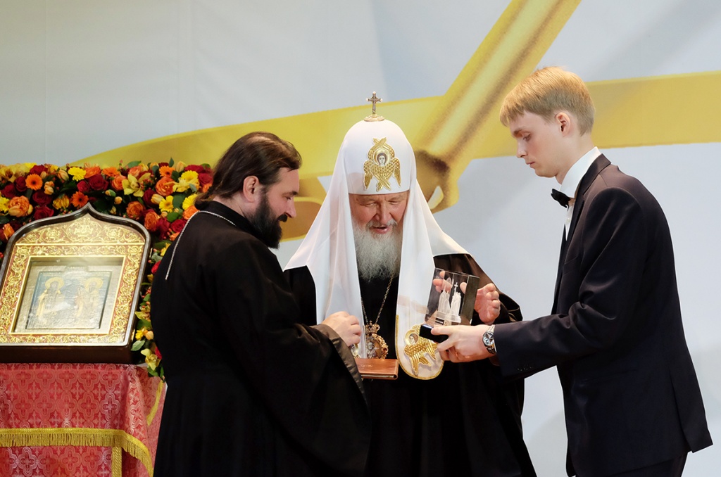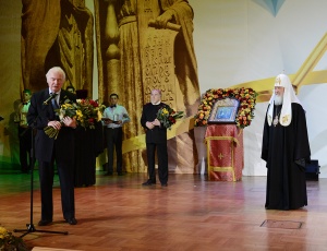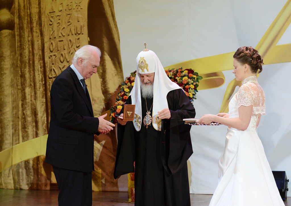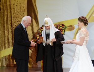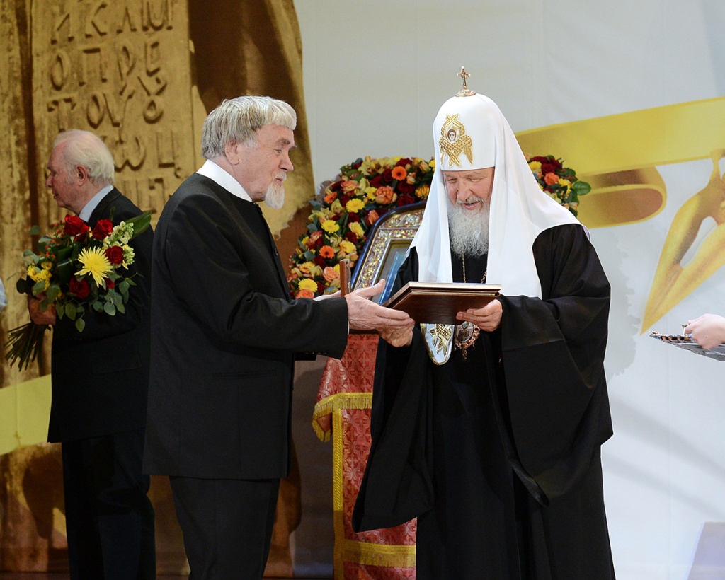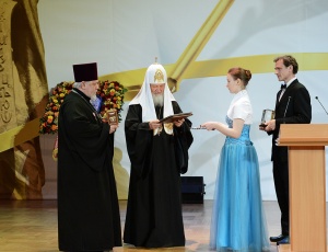 Затем на сцену были приглашены номинанты премии, которым Святейший Патриарх Кирилл вручил дипломы и памятные подарки.