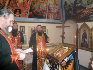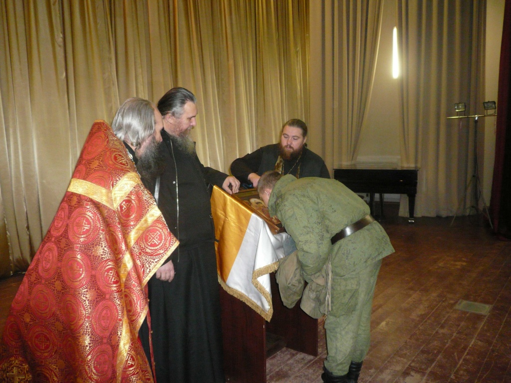 Символично также, что русский ядерный щит ковался в Сарове ? месте молитвенного подвига Святого Преподобного Серафима Саровского, причисленного к лику святых в 1903 году личным настоянием Императора Николая Второго, вопреки сильнейшей оппозиции, в том числе со стороны синодально-архиерейских кругов. Чудотворный образ Верховного Главнокомандующего Российской Императорской Армией и Флотом Государя Императора Николая Второго был помещен на аналое, покрытом черно-злато-белым Штандартом с Имперским орлом на сцене в Гарнизонном солдатском клубе, где собрались офицеры и солдаты части. Начальник Войсковой Православной Миссии Игорь Евгеньевич Смыков вручил командиру части капитану 1-го ранга Алексееву Анатолию Борисовичу и заместителю командира по работе с личным составом полковнику Маркову Дмитрию Юрьевичу юбилейные медали с ликом Государя «В память Великой войны» и «За многолетние миссионерские и просветительские труды, любовь к Богу, верность Царю и Отечеству». Воинам был показан видеофильм кинорежиссера Елены Козенковой об этом дивном образе Русского Царя. Перед Чудотворной иконой духовенством был прочитан акафист и все желающие военнослужащие смогли приложиться к мироточивой иконе. Во время молебствия произошло чудо ‒ струя благоуханного мира истекла с внешней стороны стекла Иконы, на глазах у многочисленных свидетелей, уже по профессии свое не склонных к легковерию. Мироточащая святыня была перенесена в храм Святого Преподобного Серафима Саровского, расположенный на территории воинской части. Перед обильно мироточащей и благоухающей Иконой был вновь прочитан акафист Святому Страстотерпцу Царю Николаю, все собравшиеся молились о благополучии и спасении Державы Российской. Вспоминаются слова Преподобного батюшки Серафима Саровского: «Но не до конца прогневается Господь и не попустит разрушиться до конца Земле Русской, потому что в ней одной преимущественно сохраняется еще Православие и остатки благочестия христианского... У нас вера Православная, Церковь, не имеющая никакого порока. Ради сих добродетелей Россия всегда будет славна и врагам страшна и непреоборима, имущая веру и благочестие ? сих врата адовы не одолеют. Господь помилует Россию и приведет ее путем страданий к великой славе...» Вечером икона Государя отбыла в Москву. На следующий день 4 ноября 2014 года в Праздник Казанской иконы Божией Матери и День Народного единства Чудотворная мироточивая икона Царя Николая и Казанская икона Божией Матери были обвезены вокруг Москвы по благословению иеросхимонаха Рафаила (Берестова). В Крестном объезде приняли участие: начальник ВПМ Игорь Евгеньевич Смыков, духовник Русского духовного театра "Глас" протоиерей Георгий Докукин, а также Евсеев Геннадий Юрьевич, Председатель Правления Благотворительного Фонда "Планета Добра"; Владимир Анатольевич Новиков, Президент Благотворительного Фонда "Планета Добра". Чудо Иконы последнего Главнокомандующего Армией и Флотом Российской Империи, явленное в расположении части Ракетных Войск Стратегического Назначения несомненно имеет провиденциальный характер. Но чтобы каждый мог беспристрастно оценить его, следует сказать о том, каким успехам Армия и Флот России обязаны своему Верховному Главнокомандующему. После принятия Царем на себя верховного руководства в