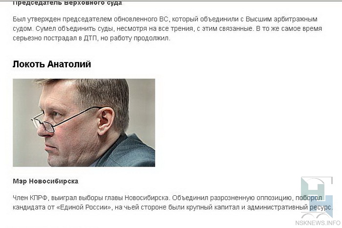 Мэр Локоть вошел в топ-100 самых современных людей России в рейтинге «Русского репортера»Влиятельный журнал «Русский репортер» включил Анатолия Локтя в топ-100 самых современных людей России. Мэр Новосибирска оказался в одном списке с министрами Сергеем Шойгу и Сергеем Лавровым, знаменитыми деятелями культуры и известными оппозиционерами. Анатолий Локоть заинтересовал журналистов «Русского репортера» тем, что в 2014 году выиграл выборы мэра Новосибирска, «объединил разрозненную оппозицию, поборол кандидата от «Единой России», на чьей стороне были крупный капитал и административный ресурс». «Нас по-прежнему интересуют неподдельные репутации, настоящие люди, а не должности или формальная известность», - говорится в предисловии к рейтингу. – …В любом случае, это люди действия, и именно их поступки меняют окружающую реальность — гражданскую, социальную, политическую, научную и культурную — или способствуют ее изменению». В рейтинг включены представители самых разных сфер деятельности – политики, бизнесмены, музыканты, артисты, спортсмены, члены общественных организаций, ученые, школьные учителя, медсестры. Так, недалеко от Анатолия Локтя в рейтинге «Русского репортера»