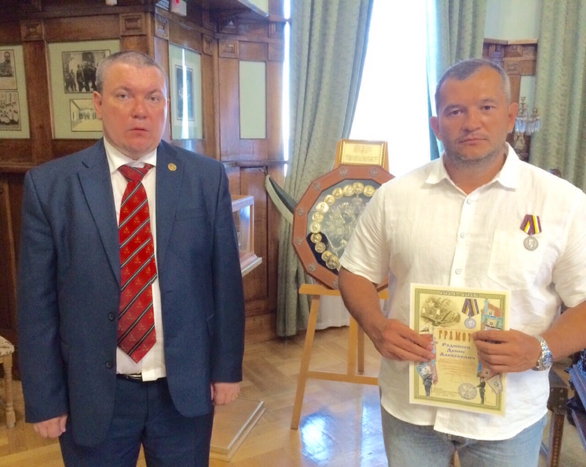 В Ливадийском дворце состоялось награждение члена ПС ВПМ Дениса Родионова медалью "В память Великой войны".1 сентября 2015 г. в Ливадийском дворце, расположенном в живописном месте Крымского полуострова близ Ялты, начальник Войсковой Православной Миссии Игорь Евгеньевич Смыков вручил члену Попечительского Совета Войсковой Православной Миссии Денису Алексеевичу Родионову юбилейную медаль "В память Великой войны", посвященную Столетию Первой мировой войны.