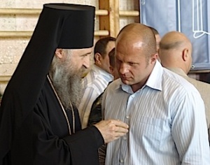 Абсолютный чемпион мира по боям без правил Федор Емельяненко призвал молодежь укреплять православный духАбсолютный чемпион мира по боям без правил Федор Емельяненко призвал молодежь укреплять не только мышцы, но и православный дух. Мероприятие открылось молебном, который совершил наместник Троице-Сергиевой лавры архиепископ Сергиево-Посадский Феогност. На богослужении, помимо Ф.Емельяненко, присутствовал также командующий ВДВ генерал-лейтенант Владимир Шаманов. "Воля к победе - это необходимое качество для всех христиан. Кто может бороться, может стать достойным христианином... Жизнь - это борьба, кто этого не понимает, кто отказывается от нее, тот отказывается от самой жизни. Нужно учиться вести себя красиво, честно, благородно", - напутствовал владыка молодых бойцов. Он подчеркнул, что боевые искусства не должны воспитывать в человеке жестокость, не должны приводить к гордости, "только смирение и доброжелательность приводят к победе". В соревнованиях участвовали 29 команд из Москвы, Петербурга, Карелии, Коми, Нарьян-Мара, Мурманска, Пскова и других российских регионов, а также из Белоруссии и Молдавии. Кормились участники и гости соревнований с солдатской кухни. В первый день в меню была гречневая каша с тушенкой, во второй - бараний плов. Соревнования проводятся ежегодно по благословению патриарха Московского и всея Руси при содействии Российского государственного университета физической культуры, спорта и туризма, Службы по защите конституционного строя и борьбе с терроризмом ФСБ России, Центра специального назначения ФСБ. Организатор - детский центр образования "Пересвет" при Троице-Сергиевой лавре.