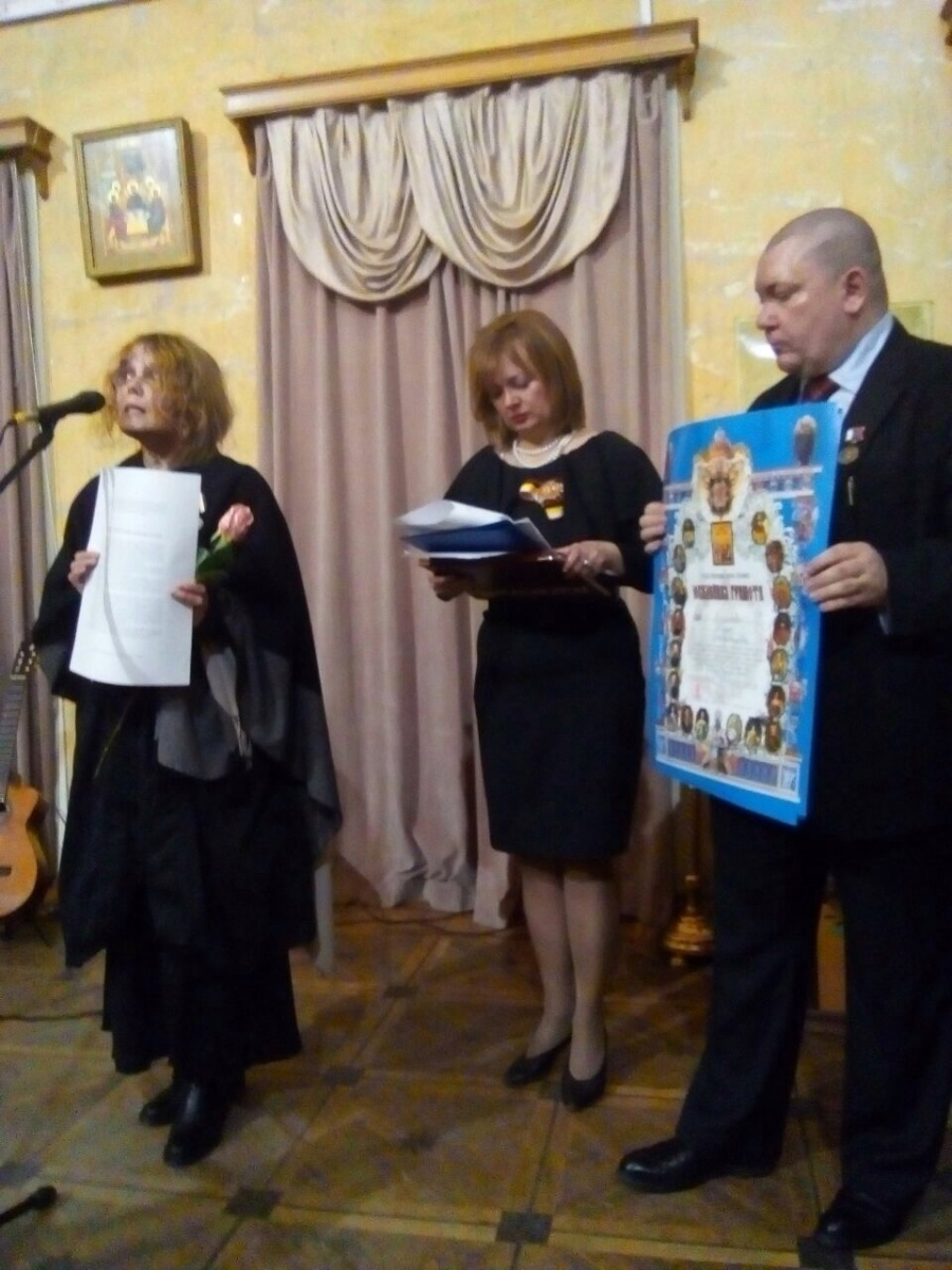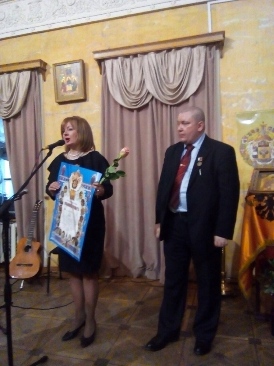 Этой же грамотой была награждена и известный православный тележурналист, автор многих православных документальных фильмов и телеведущий на ТК «Союз» кавалер ордена Святого Страстотерпца Царя Николая Елена Юрьевна Козенкова.