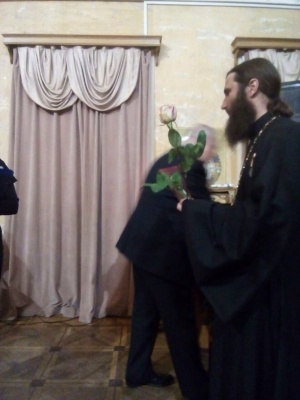 Далее слово было предоставлено начальнику Войсковой Православной Миссии, советнику Первоиерарха Русской Православной Церкви Заграницей Игорю Евгеньевичу Смыкову, который поздравил всех собравшихся с 10 – летием Воссоединения Русской Православной Церкви (МП) и РПЦЗ, важным этапом на пути к которому явилась канонизация Святой Царской Семьи на Юбилейном Архиерейском соборе РПЦ (МП) в 2000 г.