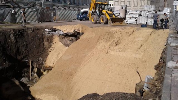 Черный День археологаВ свой профессиональный праздник, 15 августа, археологи вместе со строителями разобрали фундаменты и части стен храма XVI века на Биржевой площади. Заявление Общественного движения «Архнадзор» Произошедшее в День археолога на Биржевой площади является профессиональным поражением. За одни сутки, под прикрытием пресс-релиза мэрии о сохранении находок, археологи, состоящие на зарплате у Правительства Москвы, совместно с «благоустроителями» разобрали по камням фундамент и сохранившиеся части стен церкви Иосифо-Волоколамского подворья XVI века – памятника, открытие которого стало главным событием полевого сезона 2017 года в Москве. Сегодня, когда спецоперация подходит к завершению, археологи сами публично признали факт демонтажа. В раскопе работает экскаватор. Цель операции – строительство технической подземной части фонтана, запроектированного на Биржевой площади в рамках программы «Моя улица». Фонтана, который придуман архитекторами «с потолка» и на который, вероятно, уже потрачены деньги. Общественное движение «Архнадзор» заявляет: