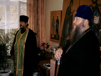Протоиереем Борисом Пивоваровым, настоятелем прихода в честь Всех святых в земле Российстей просиявших, с благословения Владыки был отслужен молебен преподобному Сергию, после которого Владыка Тихон обратился к собравшимся: