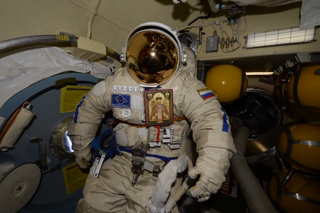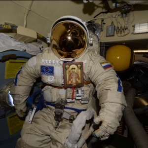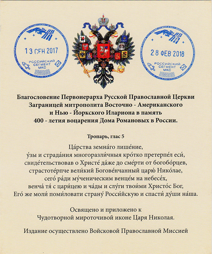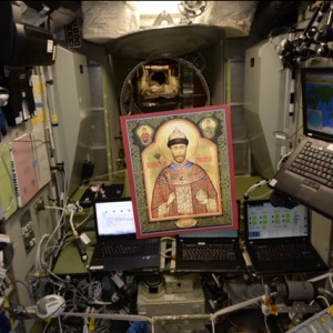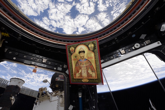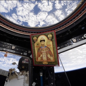 «В марте 2018 года с Международной космической станции вернулись на землю несколько бумажных икон – копий всемирно известной Чудотворной мироточивой иконы Царя Николая. Иконы несколько месяцев в составе Российско - американо - японского экипажа «Союза МС - 07» (Космонавт А. Н. Шкаплеров, астронавты: С. Тингл, Н. Канаи) облетали земной шар, совершив таким образом Крестный космический ход вокруг планеты Земля.