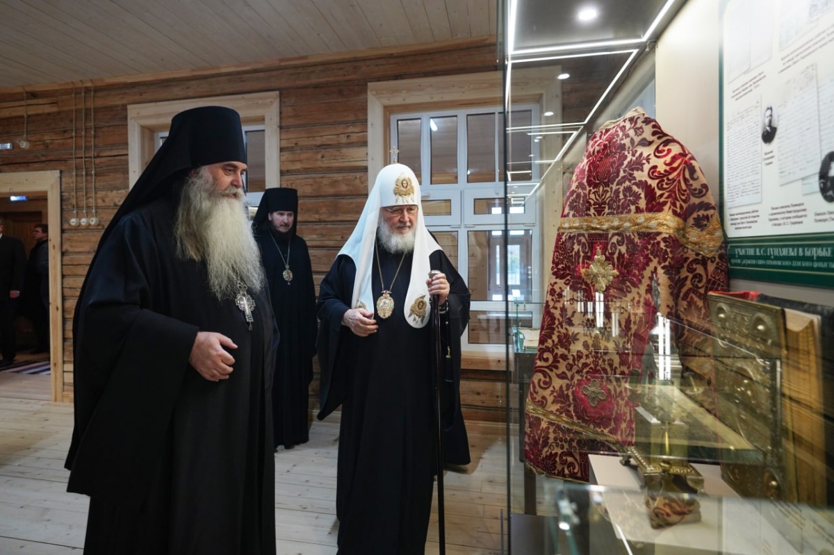 ![]() Святейший Патриарх Московский и всея Руси Кирилл посетил дом-музей «Исповедник веры Христовой иерей Василий Гундяев» в г. Лукоянове Нижегородской областиДнем 21 октября 2022 года в рамках Первосвятительского визита в Нижегородскую митрополию Святейший Патриарх Московский и всея Руси Кирилл посетил дом-музей «Исповедник веры Христовой иерей Василий Гундяев» в г. Лукоянове Нижегородской области. Предстоятеля Русской Православной Церкви сопровождали губернатор Нижегородской области Г.С. Никитин, управляющий делами Московской Патриархии митрополит Воскресенский Дионисий, митрополит Нижегородский и Арзамасский Георгий. Предстоятель осмотрел экспозицию музея. Экскурсию для Святейшего Патриарха провел настоятель нижегородского Вознесенского Печерского мужского монастыря архимандрит Тихон (Затекин).