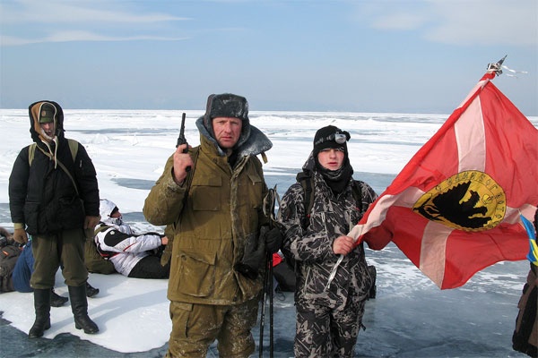 Русский Ледянной поход посвященный генералу КаппелюЧерез оз. Байкал из села Большое Голоустное до станции "Мысовая" более 50 км в невероятно сложных погодных условиях при сильном морозе и постоянном ветре, как в далёком 1920 году. На 2-м часе следования Сопредседатель Свято-Сергиевского Союза Русского народа, Сопредседатель Русского национального фонда, а также ректор Иркутского филиала РГТЭУ Николай Курьянович, возглавлявший колонну, а за ним двое участников из патриотического клуба г. Усолья-Сибирского провалились по пояс в воду на стыке льдин. Но несмотря на это, движение было продолжено. Выход был только один - постоянно двигаться, чтобы не замёрзнуть и сушить одежду на себе. Первые 6 часов при сильном морозе (-30С) и ветре колонна двигалась без остановок, в последующем привалы совершались не более чем на 5-7 мин. Заготовленными сухпайками воспользоваться не удалось, т.к всё превратилось в камень, в том числе и вода. Поэтому на всём пути следования Русские Православные Националисты ничего не ели и не пили и дошли до пункта назначения за рекордное время для этого маршрута – всего 13 часов, тем самым доказав себе и ВСЕМ недругам России, что связь времён не прервалась и жив дух победоносного Русского Воинства! Слава России!21 февраля с.г. группа патриотов-энтузиастов в составе представителей различных Правослано-Патриотических организаций Сибири: Русского национального благотворительного фонда во имя Святителя Иннокентия Иркутского, клуба "Поиск", казаков и др. проследовала по маршруту войск белого генерала В.О. Каппеля образца 1920 г.