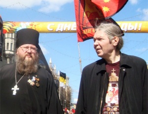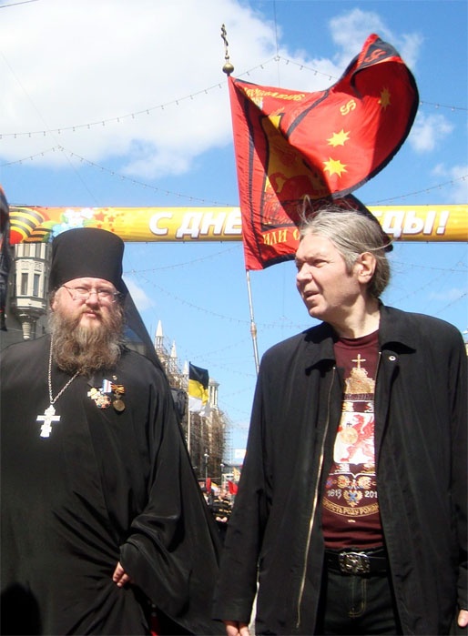 В годовщину победы Русского народа, 9 мая 2011 года, в Москве прошло Православное шествиеВ годовщину победы Русского народа, 9 мая 2011 года, в Москве прошло традиционное ежегодное Православное шествие. Шествие было замечательное. И уже традиционное. Как всегда мы дистанцировались от "краснознаменников" и шли по Тверской улице своей Православной колонной. У меня в сей день был День Рождения и я уже не один год провожу его в такой обстановке, а не за "столом". Это много ценней. Мы пели "Христос Воскресе" и скандировали "Слава России", народ отвечал тем же. Особо так было, когда мы проходили Манежную площадь, тем самым выразив солидарность со всеми, кто там недавно выступил в поддержку Русского народа. К нам присоединился иеромонах Никон (Белавенец) глава движения"За Веру и Отечество" (слово "Царь" в названии его движения не разрешили власти, так что оно в несколько усеченном виде). Подходил и С.Бабурин, и другие соратники и просто прохожие. Даже на балконе одного дома на Тверской нас приветствовали с балкона соратники, вывесив Черно-Золото-Белое Имперское знамя. Отец Никон благословил этих людей, а мы радостно махали им руками. Настоящая консолидация! Видели и коммунистов, точнее, их "верхушку" типа Анпилова и прочих. Жалкое зрелище. Обычные наемники-вырожденцы. Беседовали и с ветеранами и с коммунистами рядовыми, многие очень приятные люди, просто не дозревшие до Русского Православного Национализма, дай Бог дорастут, ибо пора! Молодежь КПРФ показалась проплаченной, ибо кто пойдет под их "идеи" и "знамена", и еще бесплатно...! Дойдя до Лубянки, где был "митинг" КПРФ мы свернули хоругви и окончили шествие. Отлично проявили себя Владислав Куроптев, Игорь Мирошниченко, Александр Королев и Валерий Левченко, - заместители главы СПХ-СПБ Леонида Донатовича Симоновича-Никшича, который не смог быть на сем шествии. Слава России! На фото: Иеромонах Никон (Белавенец) глава движения "За Веру и Отечество" и координатор Союза Православных Братств РПЦ Юрий Агещев Автор фото: Игорь Мирошниченкко (СПХ).