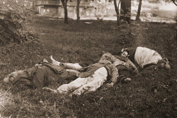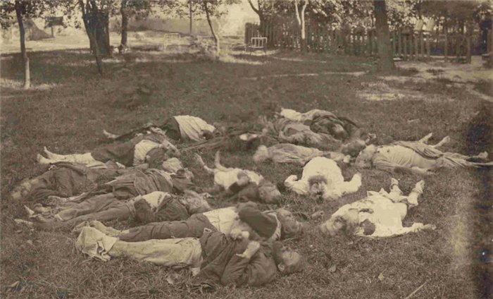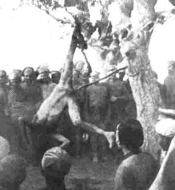 Весь … пол большого гаража был залит уже … стоявшей на несколько дюймов кровью, смешанной в ужасающую массу с мозгом, черепными костями, клочьями волос и другими человеческими остатками …. стены были забрызганы кровью, на них рядом с тысячами дыр от пуль налипли частицы мозга и куски головной кожи… жёлоб в четверть метра ширины и глубины и приблизительно в 10 метров длины… был на всём протяжёніи до верху наполнен кровью… Рядом с этим местом ужасов в саду того же дома лежали наспех поверхностно зарытые 127 трупов последней бойни… у всех трупов размозжены черепа, у многих даже совсем расплющены головы… Некоторые были совсем без головы, но головы не отрубались, а… отрывались… мы натолкнулись в углу сада на другую более старую могилу, в которой было приблизительно 80 трупов… лежали трупы с распоротыми животами, у других не было членов, некоторые были вообще совершенно изрублены. У некоторых были выколоты глаза… головы, лица, шеи и туловища были покрыты колотыми ранами… У нескольких не было языков… Тут были старики, мужчины, женщины и дети. Одна женщина была связана верёвкой со своей дочкой, девочкой лет восьми. У обеих были огнестрельныя раны. В губернской Чека мы нашли кресло (то же было и в Харькове) в роде зубоврачебнаго, на котором остались ещё ремни, которыми к нему привязывалась жертва. Весь цементный пол комнаты был залит кровью, и к окровавленному креслу прилипли остатки человеческой кожи и головной кожи с волосами… В уездной Чека было то же самое, такой же покрытый кровью с костями и мозгом пол и пр… В этом помещёніи особенно бросалась в глаза колода, на которую клалась голова жертвы и разбивалась ломом, непосредственно рядом с колодой была яма, в роде люка, наполненная до верху человеческим мозгом, куда при размозжёніи черепа мозг тут же падал. Не менее жестокими оказываются пытки, применяемые так называемой «китайской» ЧК г. Киева: Пытаемаго привязывали к стене или столбу; потом к нему крепко привязывали одним концом железную трубу в несколько дюймов ширины… Через другое отверстіе в неё сажалась крыса, отверстіе тут же закрывалось проволочной сеткой и к нему подносился огонь. Приведённое жаром в отчаяніе животное начинало въедаться в тело несчастнаго, чтобы найти выход. Такая пытка длилась часами, порой до следующаго дня, пока жертва умирала. Как сообщается, в свою очередь Харьковская ЧК под руководством Саенко применяло скальпирование и «снимание перчаток с кистей рук», Воронежская ЧК применяло катание голыми в бочке, утыканной гвоздями. В Царицыне и Камышине «пилили кости». В Полтаве и Кременчуге священнослужителей сажали на кол. В Екатеринославе применяли распятие и побивание камнями, в Одессе офицеров привязывали цепями к доскам, вставляя в топку и жаря, либо разрывали пополам колёсами лебёдок, либо опускали по очереди в котёл с кипятком и в море. В Армавире, в свою очередь, применялись «смертные венчики»: голова человека на лобной кости опоясывается ремнём, концы которого имеют железные винты и гайку, которая при завинчивании сдавливает ремнём голову. В Орловской губернии широко применяется замораживание людей путём обливания холодной водой при низкой температуре. Сведения о применении пыток во время допросов проникают в революционную прессу, поскольку данная мера, естественно, была непривычна для мног