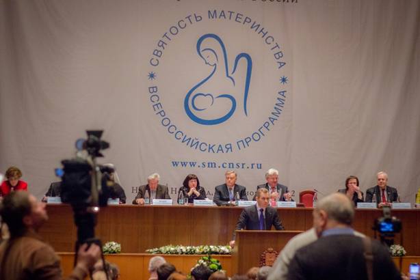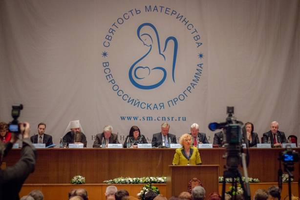 Президиум II Всероссийского форума «Святость материнства». Выступает О.Н. Епифанова Семейная политика – важнейшее дело!С приветственным словом к участникам Форума обратился председатель попечительского совета Фонда Андрея Первозванного и Центра Национальной Славы Владимир Иванович Якунин. В своем выступлении он рассказал о позитивном сдвиге в сознании людей, о примерах милосердия. Отметил он и заботу исполнительной власти о людях.
