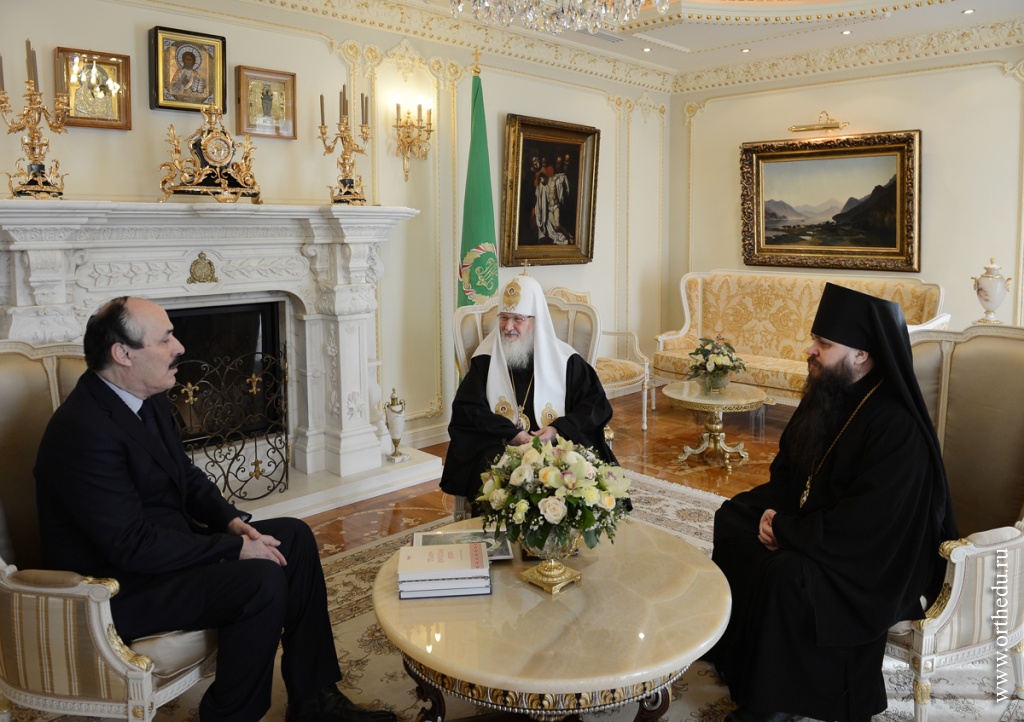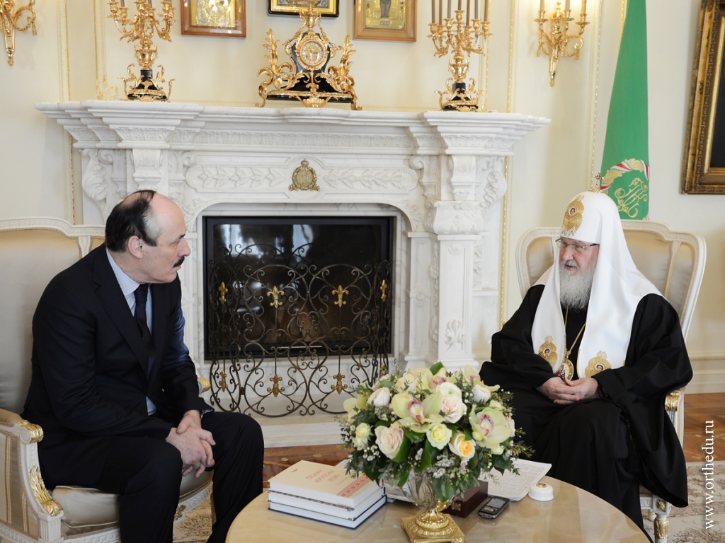 Святейший Патриарх Кирилл встретился с главой Республики Дагестан Р.Г. Абдулатиповым21 февраля 2014 года в Патриаршей и Синодальной резиденции в Даниловом монастыре в Москве состоялась встреча Святейшего Патриарха Московского и всея Руси Кирилла с главой Республики Дагестан Р.Г. Абдулатиповым. Во встрече принял участие епископ Махачкалинский и Грозненский Варлаам. Приветствуя Р.Г. Абдулатипова, в сентябре прошлого года избранного главой Дагестана, Предстоятель Русской Православной Церкви, в частности, сказал: «Рамазан Гаджимуратович, очень рад Вас видеть. Вспоминаю наши с Вами совместные труды много лет тому назад в трудное для нашего Отечества время. Рад Вас приветствовать уже на посту Президента Дагестана. С Вашим приходом на это высокое служение своему народу мы связываем положительные изменения, которые происходят в республике. Ваши заявления вселяют чувство надежды на то, что благодатная древняя земля Дагестана обретет новое дыхание для всестороннего развития. Мы считаем, что перемены в Дагестане значительно повлияют и на ситуацию в целом на Северном Кавказе».