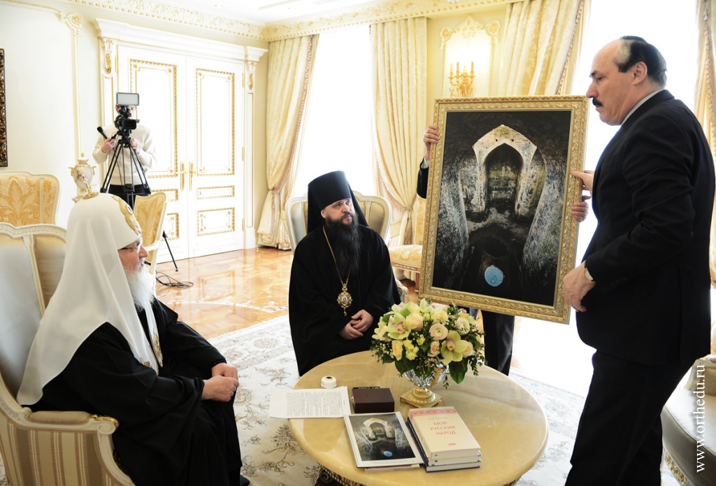 В память о встрече Президент Дагестана подарил Его Святейшеству фотографию древнего христианского храма, обнаруженного в крепости Нарын-Кала в Дербенте. «Христианство в Дагестане имеет глубочайшие корни», — отметил Р.Г. Абдулатипов, уточнив, что древний храм, полностью засыпанный землей, будет восстановлен в рамках празднования 2000-летия Дербента.