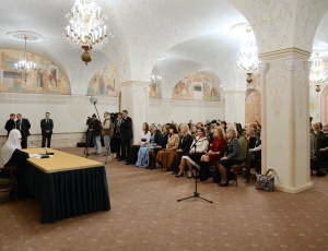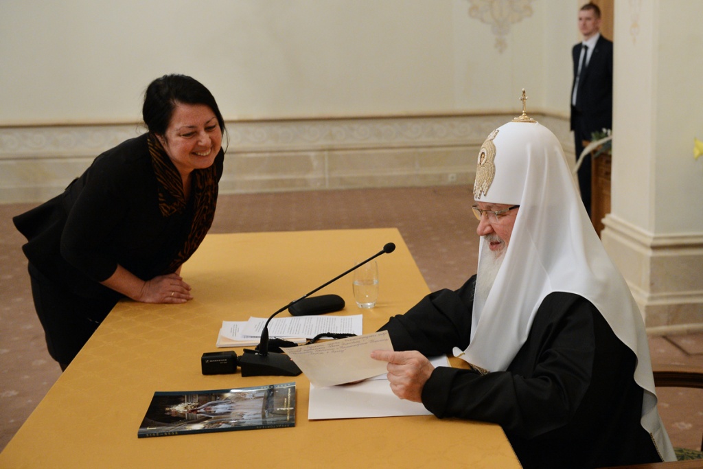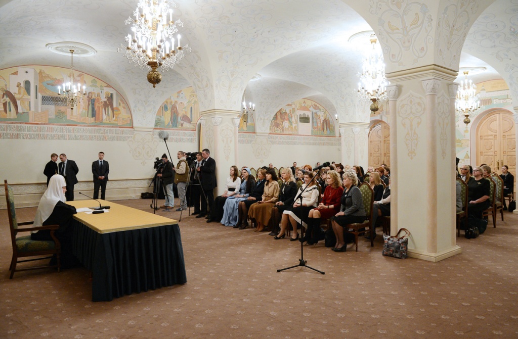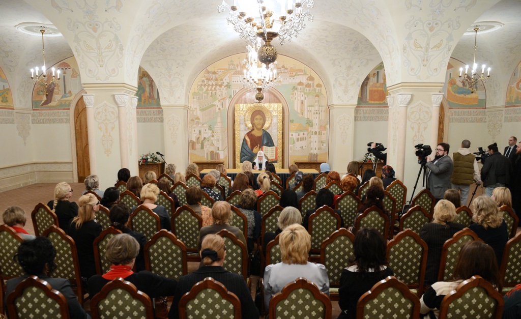 Святейший Патриарх Кирилл встретился с представителями Общероссийской общественной организации «Женщины бизнеса»28 марта 2014 года в Сергиевском зале кафедрального соборного Храма Христа Спасителя в Москве состоялась встреча Святейшего Патриарха Московского и всея Руси Кирилла с женщинами-предпринимателями из 40 регионов Российской Федерации — членами Общероссийской общественной организации «Женщины бизнеса». Во встрече участвовали президент Общероссийской общественной организации «Женщины бизнеса», президент Благотворительного фонда «Система» Т.А. Гвилава, вице-президент Благотворительного фонда «Система» Г.А. Рокецкая, члены правления и представители из регионов общественной организации «Женщины бизнеса». На мероприятии присутствовали председатель Синодального отдела по взаимоотношениям Церкви и общества протоиерей Всеволод Чаплин и председатель Синодального информационного отдела В.Р. Легойда. Святейший Патриарх Кирилл обратился к присуствующим со словом, в котором поделился своим видением роли бизнеса в жизни общества, а также поблагодарил представительниц бизнес-сообщества за поддержку социальных инициатив Церкви. «Хотел бы выразить благодарность за то внимание, которое многие из вас оказывают деятельности Русской Православной Церкви, прямо или косвенно участвуя в тех программах, которые мы сегодня осуществляем, а Церковь сегодня действительно осуществляет очень большое количество общественно полезных дел», — сказал Святейший Патриарх. От лица женщин-предпринимателей Святейшего Владыку приветствовала Т.А. Гвилава. Затем Предстоятель Русской Церкви ответил на вопросы участниц встречи, касающиеся значения духовно-нравственных принципов в жизни современного человека. *** Общероссийская общественная организация «Женщины бизнеса» создана 7 июня 2006 года. Возглавляет организацию директор Российско-арабского делового совета, глава Международного агентства по привлечению инвестиций и директор по развитию внешних связей АФК «Система» Т.А. Гвилава. На сегодняшний день у организации более 40 отделений по всей стране, от Калининграда до Хабаровска. Штаб-квартира «Женщин бизнеса» находится в Москве. Важнейшим направлением работы организации стало проведение благотворительных акций. Организация «Женщины бизнеса» оказывает поддержку детям из неблагополучных семей и детям с ограниченными возможностями.