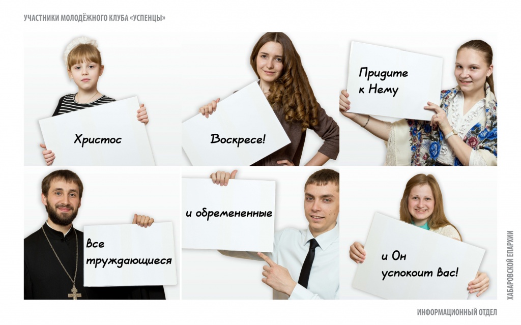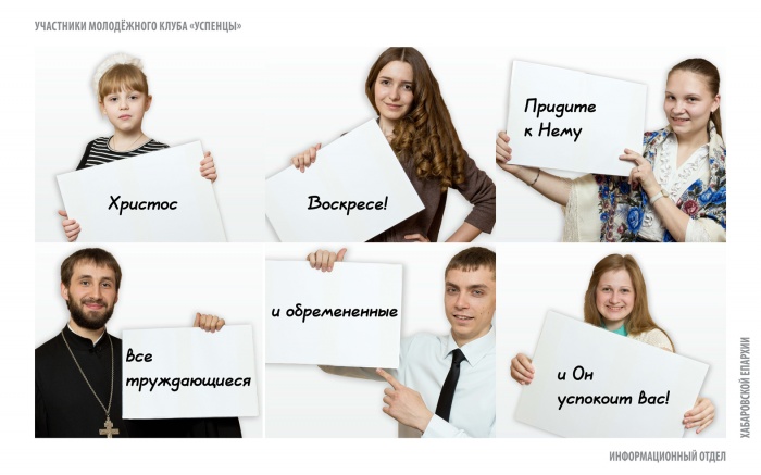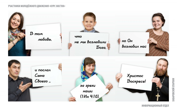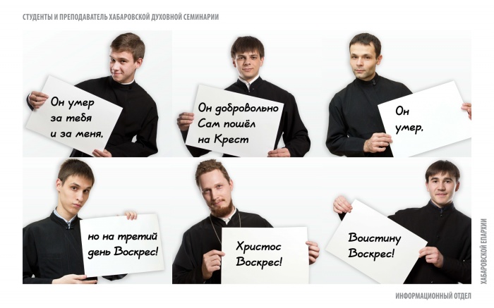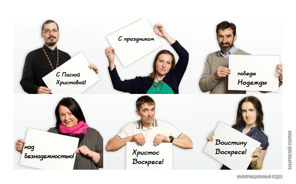 Христиан Хабаровска поздравят с Пасхой с баннеров в четырех районах городаНа баннерах православная молодежь, студенты и преподаватели Хабаровской духовной семинарии, сотрудники Информационного отдела поздравляют горожан с праздником Светлого Христова Воскресения. К празднику Пасхи в четырех районах Хабаровска будут размещены поздравительные баннеры. В рамках проекта Информационного отдела Хабаровской епархии «Пасха — праздник для всех», который осуществился при поддержке администрации г. Хабаровска, были созданы специальные поздравительные плакаты, — сообщает Информационный отдел Хабаровской епархии. На баннерах православная молодежь, студенты и преподаватели Хабаровской духовной семинарии, сотрудники Информационного отдела поздравляют горожан с праздником Светлого Христова Воскресения. «Мы решили, что поздравить хабаровчан с Пасхой должны сами горожане, тем самым показав, что Пасха — это не просто традиция или обычай, а праздник веры конкретных людей», — прокомментировал руководитель Информационного отдела Хабаровской епархии иерей Роман Никитин.