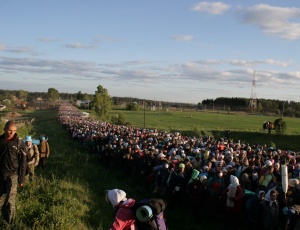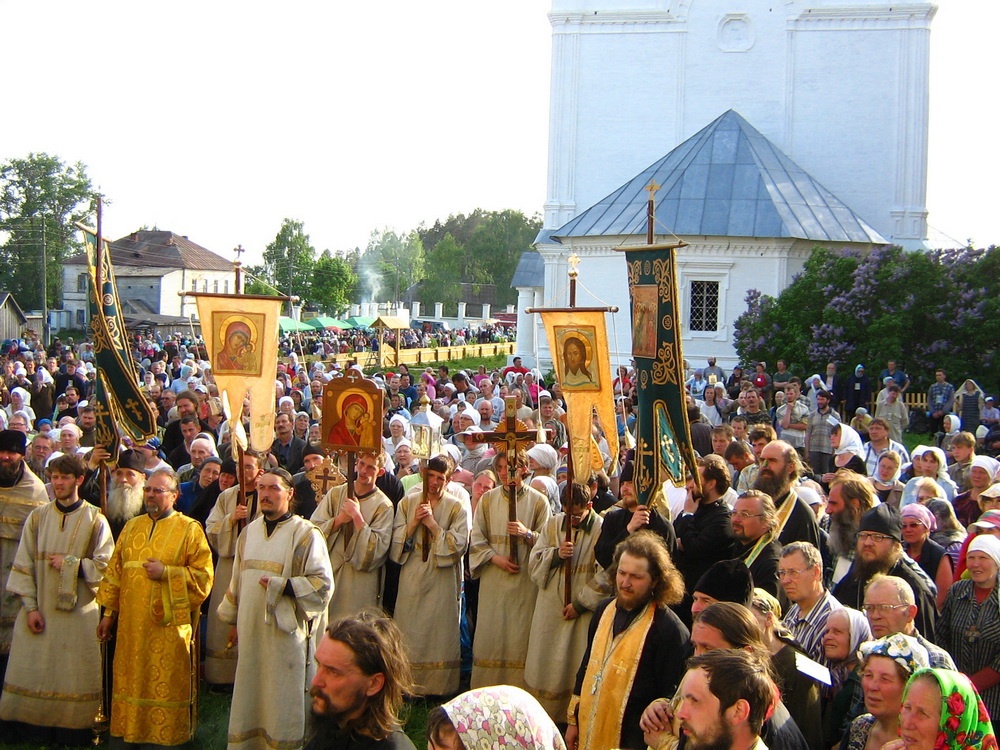 Но на Вятской земле есть еще один день памяти святого Николая – он связан с обретением чудотворного Великорецкого образа этого угодника Божия, которое произошло в 1383 году, когда на высоком берегу реки Великой крестьянину Агалакову явился чудотворный образ. Вскоре от иконы начались исцеления и чудотворения. Молва о ней быстро разнеслась по округе, люди приходили на место явления иконы, благодарили Бога за дарованную им святыню, получали духовное утешение и исцеление. Общими усилиями построили крестьяне на этом месте часовню, а позже началось строительство храма – более достойного места для чудотворного образа. В XIII–XIV веках русские люди только еще начали поселяться на вятской земле, заселенной тогда, в основном, языческими племенами. Беспокойство за святыню побудило вятичей в 1392 году перенести образ с берегов реки Великой в город Хлынов (именно такое название имел в то время и до 1780 года центр Вятского края). Хлыновцы дали обет ежегодно приносить икону на место явления. Так родилась одна из самых давних традиций вятской земли – Великорецкий крестный ход. Дата празднования обретения чудотворного образа 24 мая (6 июня по н. ст.) установлена в 1668 году первым епископом Вятским и Великопермским Александром. До 1777 года крестный ход совершался водным путем по Вятке и Великой на лодках и плотах, потом он стал проходить по суше. Сухопутный маршрут молитвенного шествия на реку Великую и обратно определен в 1778 году архиепископом Вятским и Великопермским Лаврентием (Барановичем). Этим путем и ныне следуют паломники, участвующие в возрожденном Великорецком крестном ходе. Cлава о чудесной иконе со временем разошлась по окрестным землям и дошла до стольного града. В XVI веке по велению царя Иоанна IV Васильевича икона была доставлена из Хлынова в Москву, по пути следования от нее исцелялись больные и творились чудеса. По указу государя один из приделов строившегося тогда Покровского собора (его мы знаем больше как храм Василия Блаженного) был освящен в честь Великорецкой иконы святителя Николая. С иконы были сделаны списки. С этого времени по всей Руси начинается почитание Великорецкого образа святого Николая. Второй раз чудотворная икона побывала в Москве в XVII веке по велению первого царя из рода Романовых – Михаила Феодоровича. До 20-х годов XX века Великорецкий образ находился в кафедральном соборе Вятки, отсюда же начинался ежегодный крестный ход. После уничтожения собора икона исчезла. С 30-х по 90-е годы прошлого века Великорецкий крестный ход был запрещен, но верующие, несмотря на запрет, все эти годы все равно шли к святому месту. В 1999 году многовековая традиция возродилась, а в 2000 году указом приснопамятного Патриарха Алексия II Великорецкому крестному ходу был присвоен статус всероссийского. Великорецкий крестный ход – самый древний, известный, многолюдный и величественный из всех крестных ходов Вятской земли. Он начинается 3 июня от Серафимовского собора города Кирова, идет через поселок Макарье, села Бобино, Загарье, Монастырское, Горохово. Конечный пункт – село Великорецкое, где совершаются молебны в храмах и на берегу реки Великой. В 2005 году в селе учрежден Спасо-Преображенский Никольский мужской монастырь. На богослужения в Великорецком обычно собираются более 10 тысяч человек из разных концов России и из-за рубежа. Обратно па