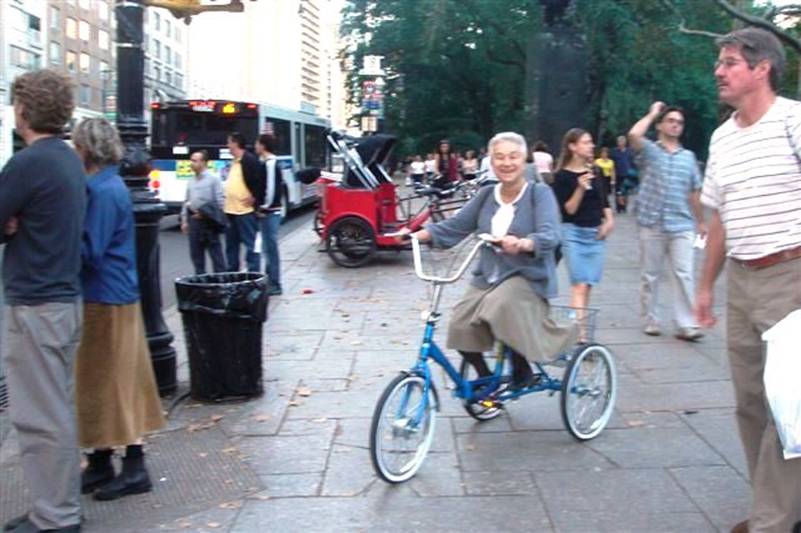 На трехколесном велосипеде у входа в Центральный парк в Нью Йорке. 2006 год. Когда-то давно из Москвы мне казалось, что в Париже всего-то есть одна церковь – храм Александра Невского. И только потом я узнала, что тут большое количество приходов. Почему Вы выбрали церковь святого Серафима Саровского, кроме того, что она близко к дому? – Раньше мы ходили в другую. Мы жили в пригороде и тринадцать лет ходили в церковь Богородицы всех Скорбящих Радости и святой Женевьевы (Геновефы по-славянски), покровительницы Парижа. Церковь была основана в 1935 году отцом Михаилом Бельским и Ниной Бруни. Здесь собралась группа эмигрантов, которые решили, что они не хотят уходить из Московской Патриархии, и не последовали за митрополитом Евлогием, но, поняв, что советский режим не собирается меняться или упраздняться и им придется остаться в эмиграции, попросили у Москвы специального благословения служить по-французски. Уже стали подрастать дети, и они решили, что служить надо на языке страны проживания, чтобы всем было понятно. Мы там были много лет. А потом наши дети выросли, ситуация изменилась, и мы переехали в эту квартиру. Теперь мы прихожане церкви Серафима Саровского в самом прямом смысле слова: через дорогу переходим и приходим в церковь, становимся прихожанами. Мы и настоятеля отца Николая очень любим. Здесь есть понятие прихода? – Конечно, да. Есть самое реальное понятие прихода, и можно только к одному приходу принадлежать. И мы платим взносы… В Москве никто взносов не платит. – У вас иначе все. Когда здание, где находилась церковь матери Марии (Скобцовой), было разрушено, к нам перенесли сосуды и облачения, вышитые ею. И иконы, которые она писала. И вышитую ею плащаницу. И поэтому храм носит двойное название: Свято-Серафимовская и Покровская церковь, а мы, прихожане, считаем себя наследниками и преемниками того прихода. С этим храмом связано небольшое наше семейное чудо. Вам интересно? Конечно. – Однажды в воскресенье утром Ричард проснулся и говорит: «Илья Фондаминский, Илья Фондаминский. Кто такой Илья Фондаминский?» Я говорю: «Имя знакомое, но я не помню». Стали думать. Думали, думали – ничего не приходит. И вдруг Ричард вспоминает, что мы прочитали биографию Владимира Набокова, и что Набоков там упоминает Илью Фондаминского, называя его «ангел Илья». Набоков тогда жил в Берлине, но, приезжая в Париж, сдружился с Фондаминским и его женой и всегда у них останавливался. И мы нашли это место в книге: как раз вышла на английском двухтомная биография Набокова. С этим и пошли в церковь. Отслужили литургию. В конце службы отец Николай выходит на амвон и объявляет, что на Совете при Вселенском Патриархате решили канонизировать несколько новых святых: мать Марию Скобцову и ее соратников – отца Дмитрия Клепинина, ее сына Георгия и ее друга Илью Фондаминского. И еще одного святого отдельно от этой группы – протоиерея Алексея Медведкова, чьи нетленные мощи были обнаружены здесь, во Франции. И произошло это как раз в то утро, когда у Ричарда в голове возник Илья Фондаминский. Мы, конечно, прислушались к этому событию: были на канонизации, заказали икону. И теперь он – наш семейный покровитель. Илья Фондаминский был интересный человек, парижский интеллектуал, еврей. В молодости был чуть ли не террористом и кадетом, а потом, в эмиграции, стал издавать газету. Он б