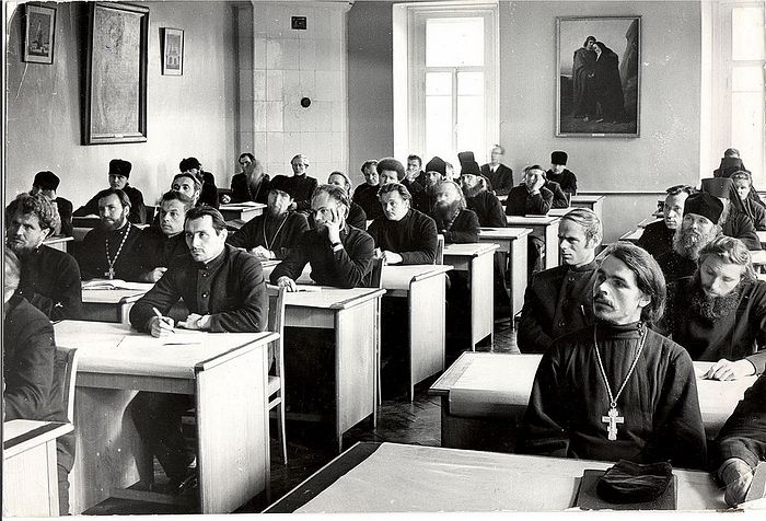 И вот Петр в Троице-Сергиевой Лавре. Это были первые годы, когда семинарию перевели в Загорск. «Таких, как я, – вспоминал отец Петр, – бывших военных, было немало. Но только я один щеголял с тремя орденами. Мама мне говорила: "Не бери ты их в семинарию”. Ну как же меня удержишь?! Я был щеголь, тем более честно их заслуживший». Поселили Петра Бахтина в общежитие. «Утром до занятий ходили приложиться к мощам преподобного Сергия, потом уроки, потом обед, далее свободное время и вечерняя подготовка. Так и проходили дни, – вспоминал отец Петр. – Учиться было интересно». Жил вместе с Петром в одной комнате студент по фамилии Щ., контактный такой юноша, разговорчивый. Всё время просил рассказать, как на фронте было. «Так, бывало, мы сядем с ним за шахматы. А он меня просит: "Расскажи да расскажи, как воевал”. Ну, я за игрой и вспоминаю, что да как было. Порой некогда было слова подбирать, ведь за игрой-то тоже надо следить, вот и отмазывался да отшучивался. Порой даже не обращал большого внимания на вопросы». В это время ходил Петр Бахтин в Ильинскую церковь. Нравилось ему там. Душевной и уютной казалась. Подружился там с девушкой и написал матери письмо, спрашивая ее благословения. Тетя моей мамы монахиня Евфросиния рассказывала, как в приходе появился будущий отец Петр. «Пришел однажды в храм военный, статный такой, на голову выше всех, издалека его видно, весь в медалях, черты лица очень правильные, и стал молиться. В приходе его сразу заметили. Батюшка сказал, что он в семинарию приехал учиться. Это было очень отрадно видеть, как полноценные люди, прошедшие войну и имеющие боевые награды, выбирают путь служения Богу». "Откуда ни возьмись появились молодцы и скрутили мне руки. Потом показали мою бумагу: ‘Это вы писали?’”