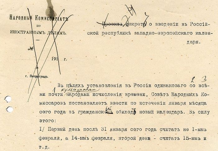 Декрет о введении в Российской республике западноевропейского календаря. С.1. Машинопись на бланке. Фрагмент. РГА СПИ. Ф. 2. Оп. 1. Д. 5249. Л. 1-2 Переход на Григорианский календарь не был догматической проблемой. Но проблема эта, тем не менее, очень важная и принципиальная. И она достаточно остро переживалась в России. Церковный народ с радостью, кстати говоря, отказался от календарной реформы еще и потому, что разделение на мирское и духовное, которое возникло, оказалось очень полезным для духовной жизни именно в России послереволюционной. Церковный народ оставался в правильном мире – в мире, который разрушался государством и обществом, но который сохранялся в Церкви. Кстати, ни одно из антибольшевистских правительств не признало европейские календари: все документы Белого движения датируются именно старым стилем – это тоже была некая форма изоляции от большевизма. И такая некая параллельная календарная жизнь просуществовала до конца советской власти – до 1990-х годов – именно как сознательная форма иной организации церковной жизни – организации, основанной на соблюдении традиций в государстве, которое поставило отказ от традиций во главу угла своей политики. Давно идет процесс, который не может не настораживать: Церковь забывает о том, что ее календарь – другой Ситуация изменилась, когда государство образумилось и вроде бы вернулось к традиционным ценностям и принципам, но отказаться от нового календаря, естественно, ни у кого не хватило ни силы, ни средств, потому что это занятие недешевое и, самое главное, очень неудобное с точки зрения государственных интересов. И в это время начался тот процесс, который, конечно, не может не настораживать: Церковь постепенно стала забывать о том, что ее календарь – другой. Из календарей стали постепенно исчезать цифры в скобках, которые указывали на правильные даты праздников и событий церковной жизни. Фактически возник некий гибридный церковный календарь, в котором все праздники – прежде всего речь идет о непереходящих праздниках с фиксированными датами – вдруг приобрели новое значение, новые даты, которые на 13 дней отличаются от принятых во всей остальной Православной Церкви. И, конечно, это вызывало и насмешки, и вопросы. И, конечно, это неправильно и ненормально. Создается некая двусмысленная, ложная ситуация: мы делаем вид, что живем по тому же календарю, что и все, но почему-то какие-то сбои возникают регулярно. С Христом или с миром?