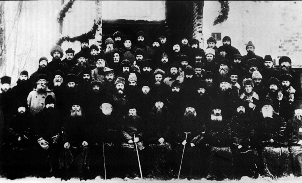 Проторенный скорбный путь тысяч и тысяч... Кемь, Попов остров — «Кемьперпункт», далее — Большой Соловецкий остров, 13-я карантинная рота в бывшем Спасо-Преображенском соборе, переоборудованном под огромный барак. И огромные подземелья под забором — карцер. Уже по дороге в этот созданный большевиками ад с издевательской аббревиатурой «СЛОН»1, стали приглядываться друг к другу и окрест себя. Кучки мужиков, старообрядцев, еще не потерявших выправку бывших офицеров и генералов, сутулые фигурки студентов и польских ксендзов и земских деятелей. Но основную массу арестованных составляли священнослужители и среди них — большая группа епископов. Подавляющее число этих священнослужителей проходило по так называемому «шуйскому делу», «помголу» и изъятию церковных ценностей.
