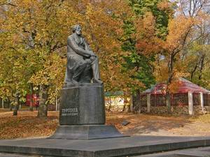 В нашем городе имеются и другие места, связанные с именем писателя: улица, театр, музей. Памятник – на берегу Оки. Бюст – в заповедном уголке Орла "Дворянское гнездо", которое уже потеснено элитной застройкой местных нуворишей. Но живого духа Тургенева и его благодатного творчества не ощущается. Писатель для большей части орловцев не более чем бронзовая фигура на постаменте или истёртая полузабытая страница недочитанного и недопонятого школьного учебника.