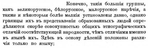 «Примечания» сообщают: «212. Термин «украинский» по отношению к языку употребляется в разных значениях. У старых ученых - Михальчука, Житецкого (прим. 197) и др. - этим термином обозначаются лишь в. говоры ю.-м.-р. наречия, называемые нами «восточно-украинскими»; «подольский говор» и «галицкий говор» ими отделяются от «украинского». В том же смысле употреблен этот термин и у Соболевского (Оч.). Но тот же термин употребляется многими учеными, главным образом, малорусскими, для обозначения всей м.-р. речи, а так же - как название м.-р. литературного языка (в основу которого лег один из украинских говоров). ...» [19]. Приведённые цитаты показывают неоднозначность термина «украинский», разные смыслы, которыми его наделяли дореволюционные учёные-лингвисты.