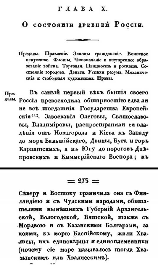 Илл. 2. Н.И. Карамзин. История государства российского. Т. I. Изд. 1818. С.272-273. Понимание имени Россия как Русь, идентичность значения этих названий, воплощены не только русской исторической наукой, но и монументальным искусством, знаменитым юбилейным памятником «Тысячелетие России», открытым в 1862 г. в Великом Новгороде. Основатель российского, русского государства и одновременно страны Русь, Россия Рюрик изображён на нём держащим щит с датой «лета 862» (илл. 3) [4].