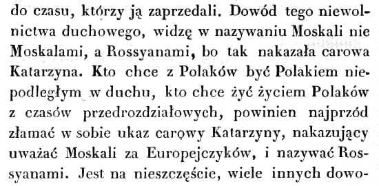 Илл. 5. 3-я страница книги Я. Потоцкого. Фрагмент. За первым польским украинским идеологическим вбросом последовали следующие, в XIX - начале ХХ вв. тянется череда русофобствующих поляков и присоединившихся к ним идеологических янычар русского происхождения, совместно повторявших мифы об отдельности «русинов-украинцев» (и «белорусов») и «Руси» в польском смысле (Украины и Белой Руси) от «России» («Московии») и «московитов». Назовём наиболее известных творцов и распространителей украинской мифологии этого периода: Т. Падурра (Tómasz Padúrra), А. Мицкевич (Adam Mickiewicz), М. Чайковский (Michał Czajkowski), Ф. Духинский (Franciszek Duchiński), ранний Н.И. Костомаров, П. Свецицкий (Paulin Święcicki), В.Б. Антонович (Włodzimierz Antonowicz), М.С. Грушевский, В. Липинский (Wacław Lipiński), Л.М. Цегельский. Особо надо выделить митрополита А. Щептицкого (полное имя Roman Maria Aleksander Szeptycki), превратившего в Галичине рускую церковь (как её называли сами галичане) в украинскую.