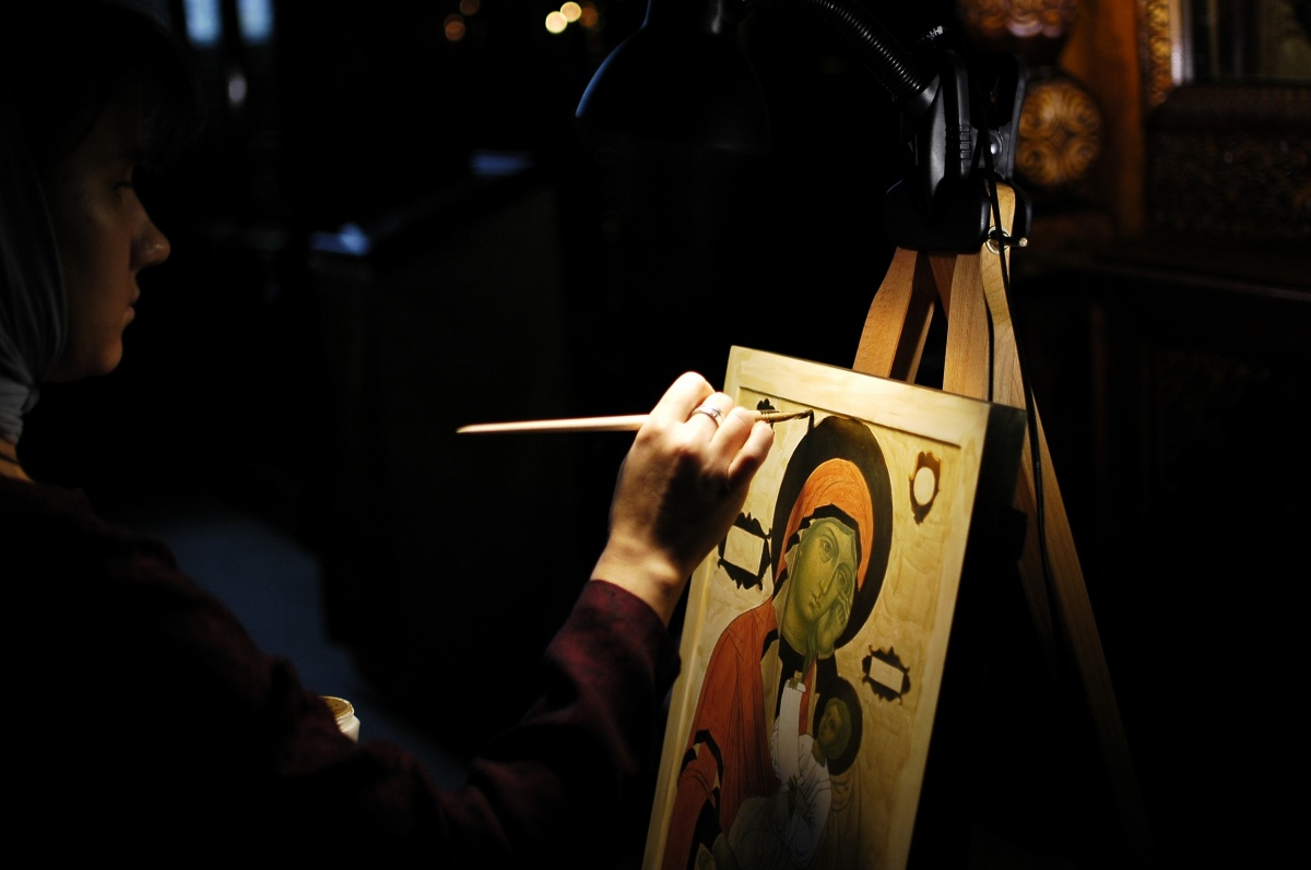 – Мы сейчас живем в такое время – «с переливами». У нас всё в электричестве, всё с отблесками, со вспышками какими-то. Мне кажется, что это всё просто игрушки, далекие от благочестия: ведь икона – это не фокусы, не предмет для развлечений. Это напоминание о вечном Боге, о Котором мы узнаем только при покаянии. Тут и иконописец, и просто верующий человек без покаяния, без очищения сердца не поймет, что есть Бог. Причем тут переливы и всякие фокусы? Их с благочестием не соединить.