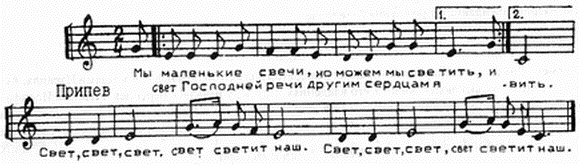 И в этот дивный вечер Так радуйтесь же с нами Рождественское чудо Мы - маленькие свечи, Припев: Свет, Свет, Свет, Свет явился нам. (2 раза) Ведущий: Все поют тропарь, глас 4-й