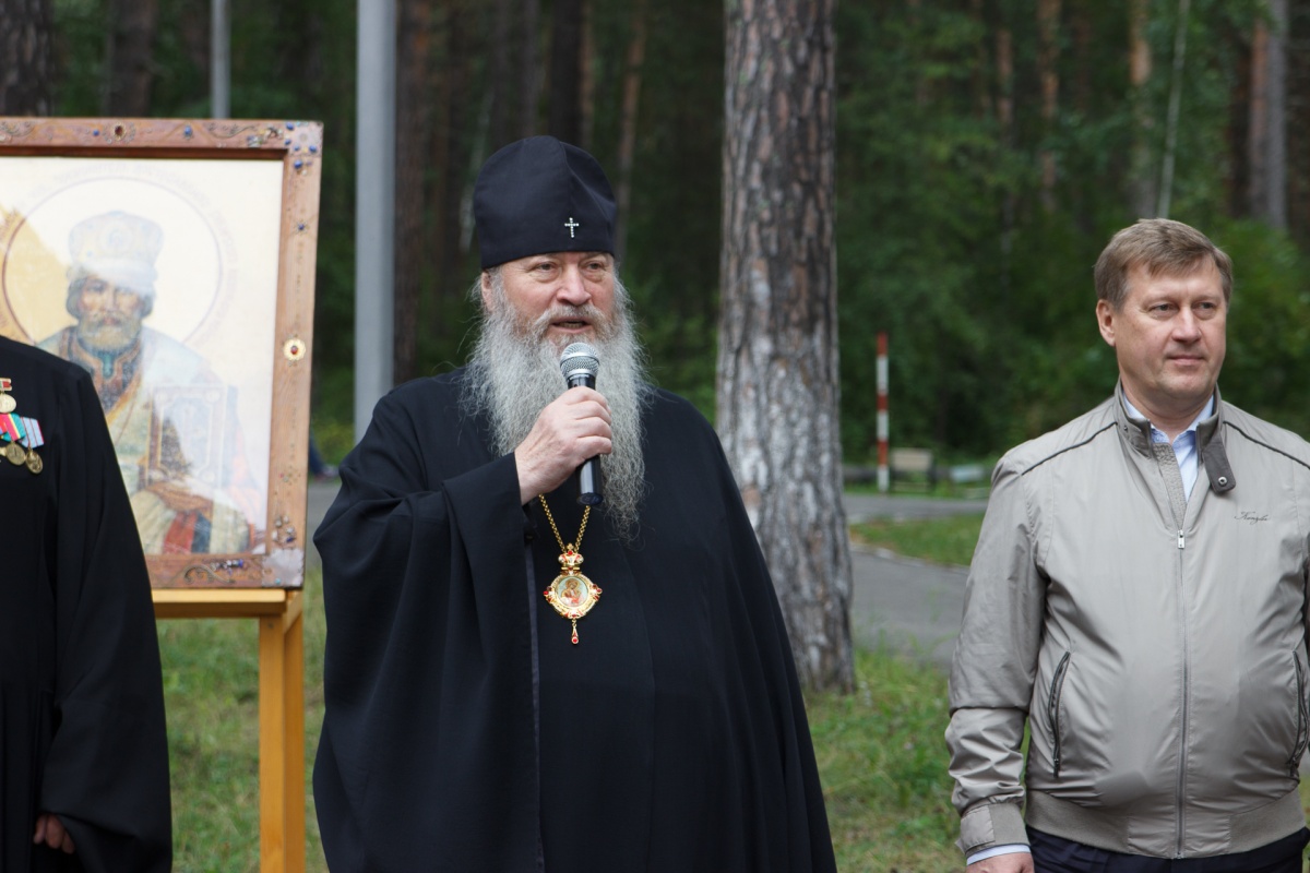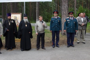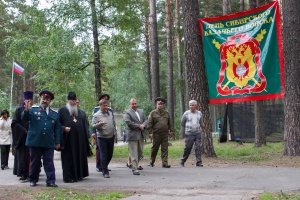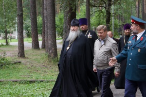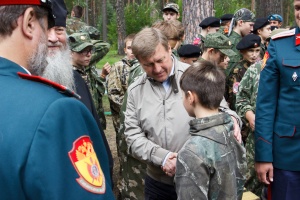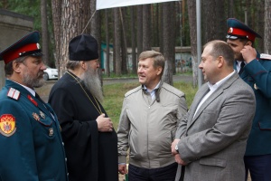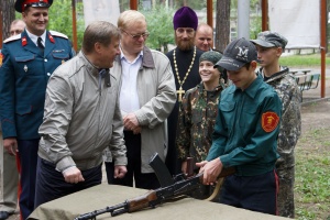 Митрополит Тихон и Анатолий Локоть приветствовали детей на торжественном построении. "Очень важно, что здесь, в военно-патриотическом лагере вы живете по уставу, изучаете воинскую науку, историю, узнаете о великих личностях, о тех славных победах, которыми наши предки прославили родную Русь", - обратился к участникам лагеря Владыка.
