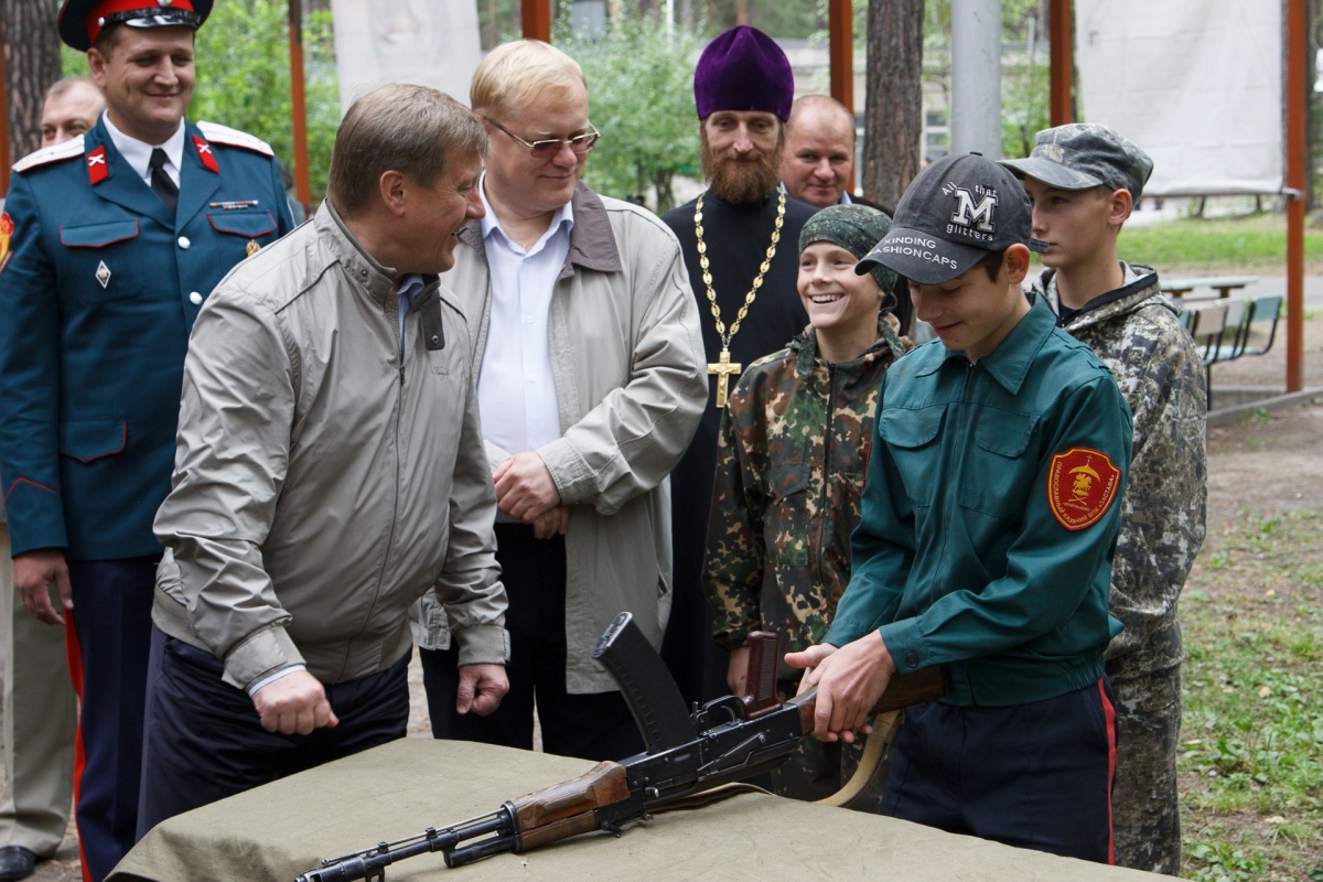 Мэр Новосибирска Анатолий Евгеньевич Локоть и Митрополит Тихон посетили военно-патриотический лагерь "Полевой стан"Почетные гости осмотрели территорию, побывали на занятиях, познакомились с укладом лагеря и обсудили вопросы сотрудничества в деле патриотического воспитания. Военно-патриотический лагерь "Полевой стан" основан 17 лет назад, последние годы он располагается на базе оздоровительного лагеря "Гренада" на берегу Бердского залива. В эти дни завершает свою работу профильная смена, в которой принимают участие военно-патриотические клубы города и области.