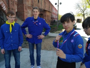Православные следопыты Новосибирска приняли участие в Георгиевском параде в МосквеС 4 по 6 мая старшие следопыты из отряда во имя святого мученика Вонифатия города Новосибирска совершили поездку в Москву, где приняли участие в Георгиевском параде в день памяти святого Великомученика и Победоносца Георгия — небесного покровителя Российского воинства и скаутов России. Также следопыты посетили множество храмов, монастырей и достопримечательностей столицы. 4 мая, после нелегкого перелета, следопыты разместились в гостинице Донского мужского монастыря, в котором помолились у мощей Святителя Тихона, Патриарха Всероссийского. Затем иеромонах Серафим (Савин) организовал для следопытов паломничество в Свято-Данилов монастырь, где ребята помолились у мощей Преподобного и благоверного князя Даниила Московского; в Спасо-Преображенский Новоспасский ставропигиальный монастырь — там следопыты помолились у чудотворного образа Пресвятой Богородицы «Всецарица» и почтили память Архиепископа Костромского и Галичского Алексия. В завершение экскурсионного дня следопыты прогулялись по набережной и поужинали в монастырской трапезной.