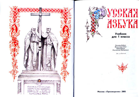 Следом за форзацем, на второй странице учебника, помещен графический рисунок памятника святым Кириллу и Мефодию. Вот эту страницу действительно нельзя равнодушно пролистнуть, не задерживая внимание детей. Логическим переходом от форзаца к столь важной странице 2, могут послужить следующие вопросы к детям: «Откуда взялись наши буквы? Когда они появились? Ведь было время, когда их не было. Кто придумал наши буквы?» Вот краткая информация для учителя, которая поможет ему ответить на эти вопросы в начале учебного года и в конце, когда будут изучаться темы: