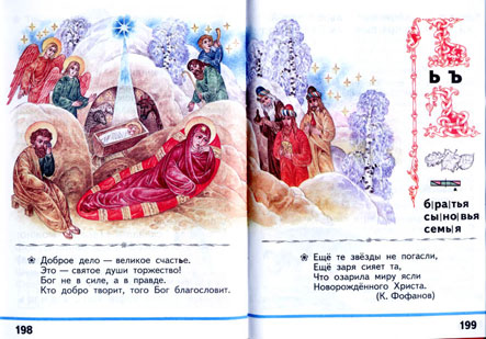 Рождество Христово, 7 января – государственный праздник. Как хорошо, что можно о нем поговорить с детьми. Разворот учебника [14, стр. 198-199]